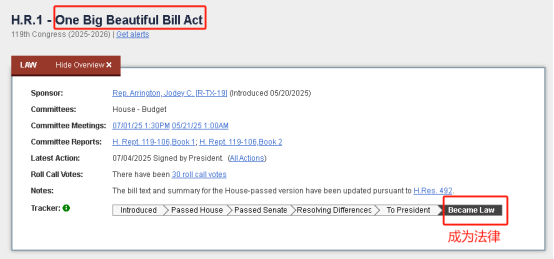 近日,特朗普正式签署了备受争议的“大而美(One Big Beautiful Bill Act)”政策法案。
